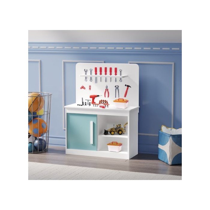 Com a Bancada de Ferramenta a diversão é garantida. Ela é ideal para estimular a criatividade do seu filho, estimulando a imaginação e o desenvolvimento motor. Sendo Funcional e prática, é ótima para quem curte martelar, pregar, parafusar e construir coisas. Além disso, é compacta e charmosa, combinando com qualquer ambiente da casa, até mesmo na sala.