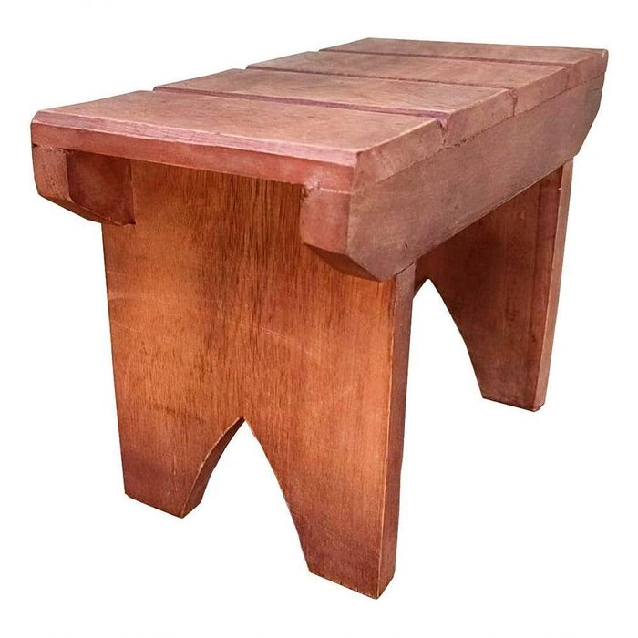 Mini Banquinho Pedicure de Madeira Maciça Artesanal Rústico Cor Marrom