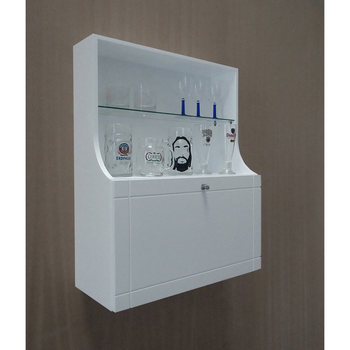 Mini Bar Adega Armário Suspenso para Bebidas Copos e Taças Porta Basculante Branco Laca Branco