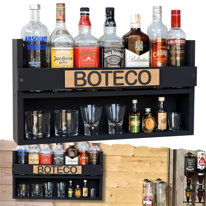Mini Barzinho Bar Adega Parede Porta Copos Expositor Bebidas Garrafas Preto Fosco