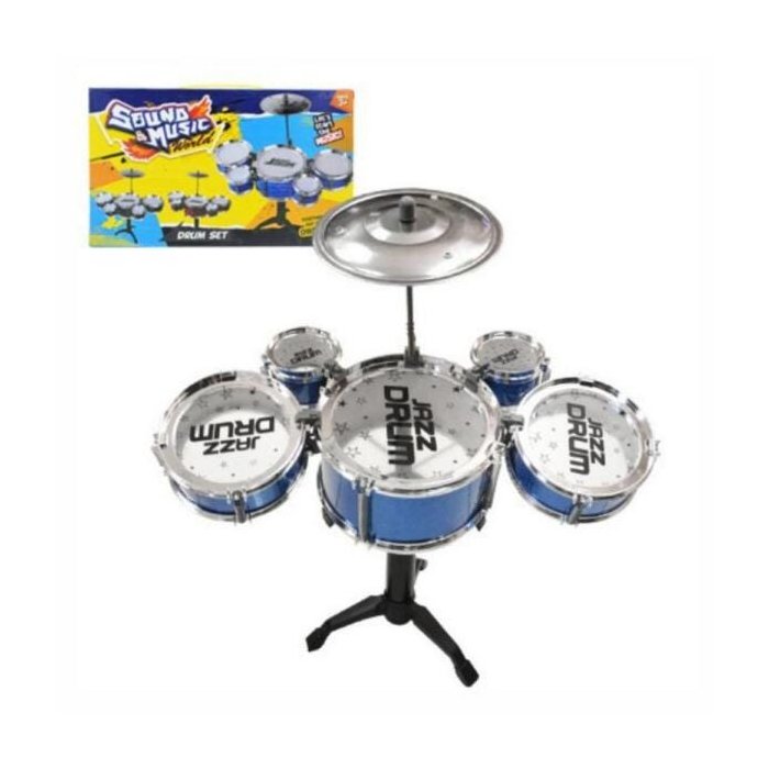 Tendo seu material composto de plástico e metal, a bateria é de tamanho pequeno, perfeita para a criança desenvolver. Produto na cor Azul