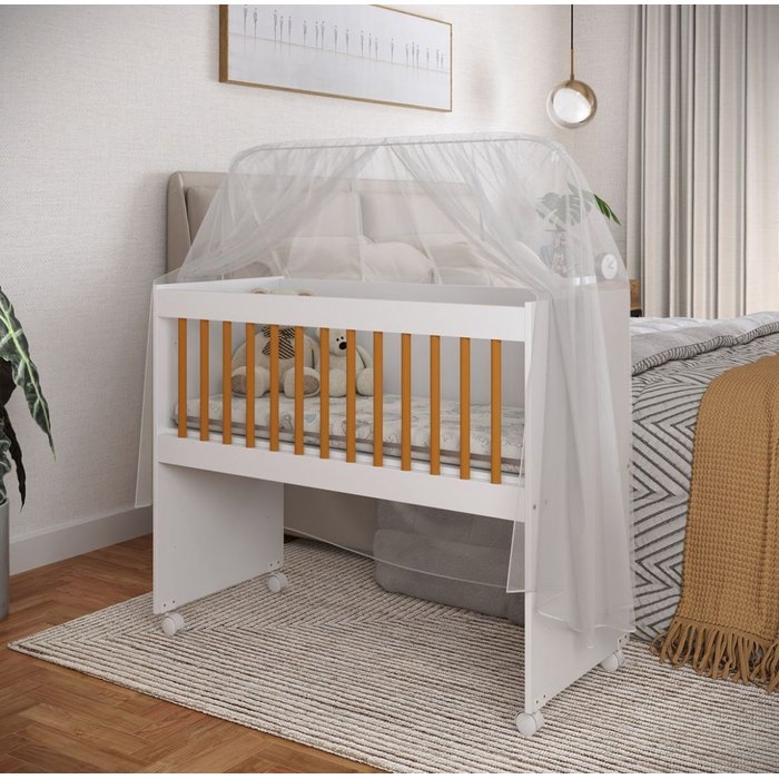 Mini Berço Moisés com Colchão Lateral Branco / Nature