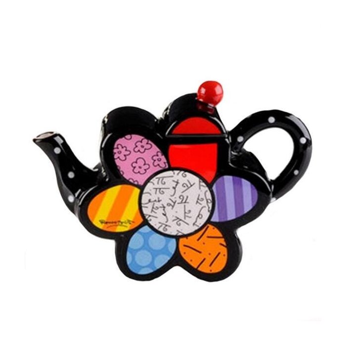 Mini Bule produzido em Cerâmica pintada à mão, assinado pelo renomado artista Romero Britto. Esses bules são super diferentes, mimosos e inovadores!