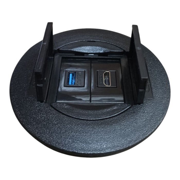 Mini Caixa de Embutir Redonda 1 Emenda Usb 1 Hdmi Preto