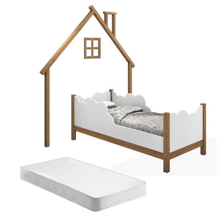 Mini Cama Casinha De Parede Brysie Madeira E Branco Com Colchão