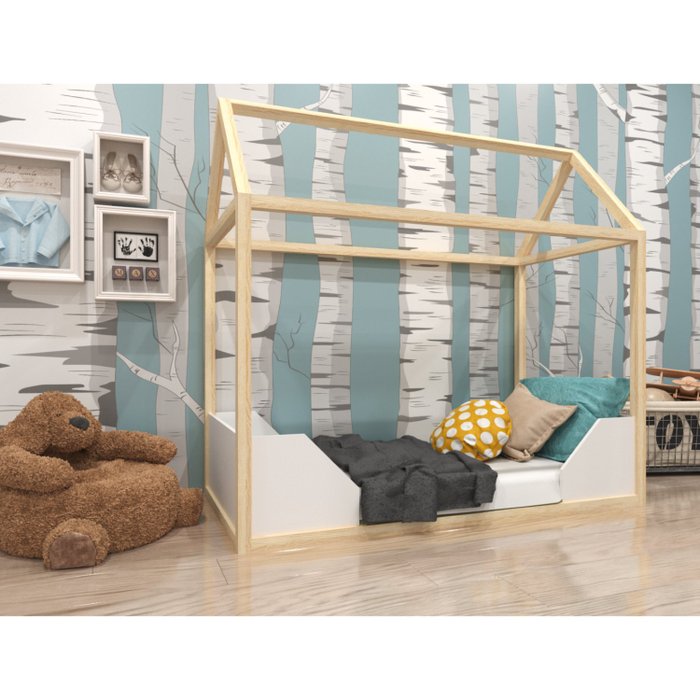 Mini Cama Casinha Montessoriana Portugal Branco/Pinus