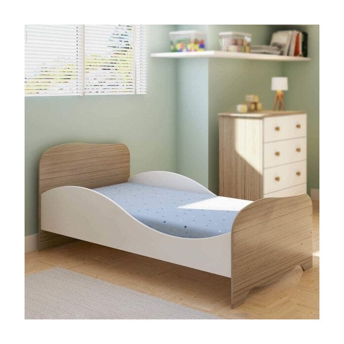 Mini Cama Infantil com Proteção Lateral em MDF Uli Branco Brilho/Carvalho