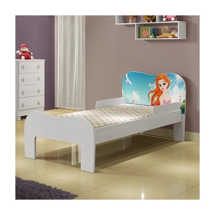 Mini Cama Infantil Soneca com Desenho Sereia Tigus Baby Branco/Azul