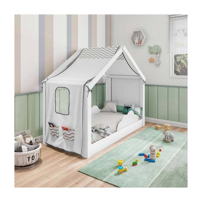 A Mini Cama Montessoriana Tiny House foi desenvolvida para auxiliar no desenvolvimento e autonomia das crianças, pensando sempre na segurança. Seu formato de casinha deixará o quarto do bebê ainda mais delicado. A Grade de proteção Nuvem é 100% em MDF, ideal para a proteção dos pequenos na hora de dormir. Pode ser utilizada na Mini Cama Tiny House, além de proteger deixará a cama ainda mais delicada. O Dossel ZigZag foi desenvolvido para deixar a Mini Cama Tiny House ainda mais aconchegante. Contém bolsos para guardar brinquedos e objetos, tem janelinha em tule para que a casinha fique completa.