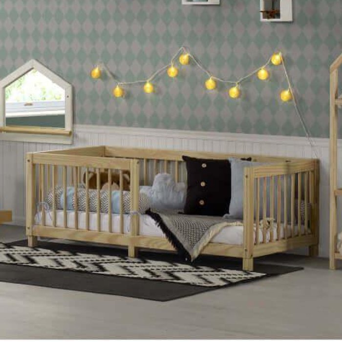 Mini Cama Montessoriana Berço com Grades Palitos Casatema MadeiraOriginals Natural