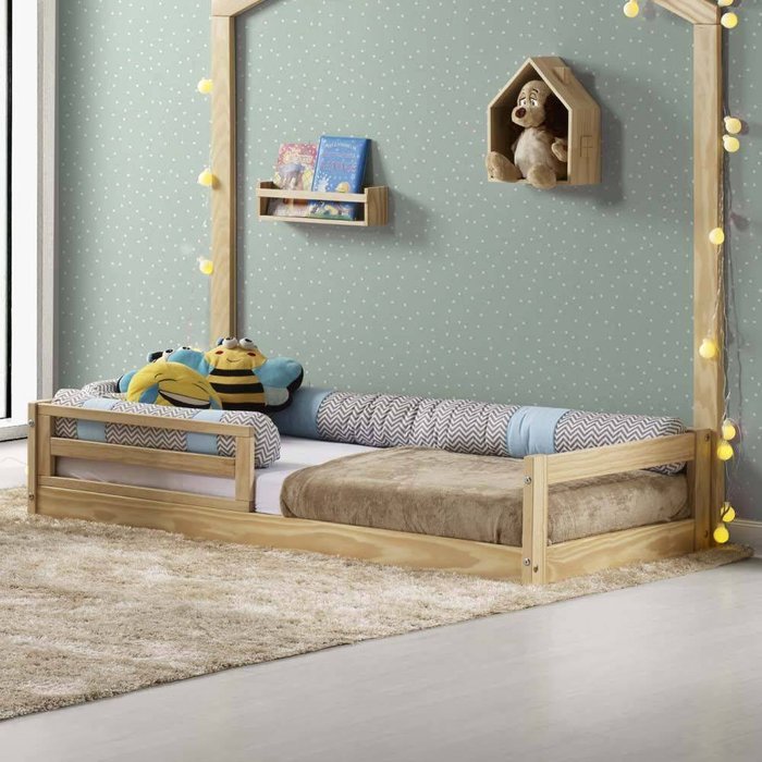 Mini Cama Montessoriana Infantil Montessoriana Graciosa Natural com Grade - Casatema