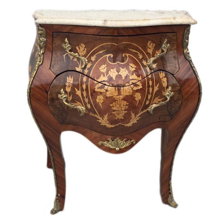 Mini Cômoda Bombê Luis XV Tmp. Mármore Apl. Bronze 2 Gavetas Verniz