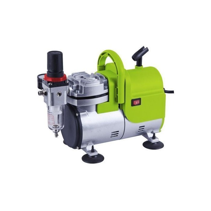 DESCRIÇÃO DO PRODUTO: MINI COMPRESSOR CS-0284 BIVOLT FERIMTE 22247 Características: Medidor de pressão, filtro de ar e de ajuste de pressão Tipo de pistão: Sem óleo Pressão imediata, fluxo de ar contínuo e potente Baixo nível de ruído: 62gb Função Auto/liga e Auto/Desliga Os mais silenciosos do mercado Termicamente protegido Especificações Técnicas Tipo: Pistão Potência: 1/6 HP Velocidade: 1450/1700 r.p.m - Fluxo de ar: 20~23L/min- Auto/Desliga: 4BAR (57psi)Auto/Liga: 3BAR (43psi)- Ajuste de pressão: 0~4 BAR- Peso Líquido: 3,9kg Dimensão: 255x144x230mm Material: metal Vencimento: Indeterminado Ideal para:- Aerografia Modelismo- Tatuagens - Maquiagens - Pintura corporal Adequado para aerógrafos bicos: 0,2~1,0mm Não acompanha mangueira!