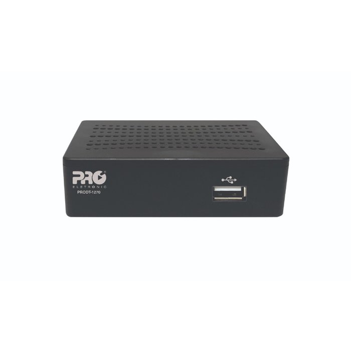 O PRODT-1270 é compacto e conta com software intuitivo. Converte o sinal de TV para sinal digital, recebe sinais em alta qualidade, possui Mídia Center e entrada USB para exibição de filmes e fotos. O Conversor Digital da Proeletronic é perfeito para TVs de tubo ou LCD/LED sem conversor integrado. Isso porque além de receber sinal HDTV em máxima qualidade, permite gravação dos seus programas favorito e possui entrada USB possibilitando utilizar a TV como central de mídia para filmes, fotos e músicas nos formatos mais usados.