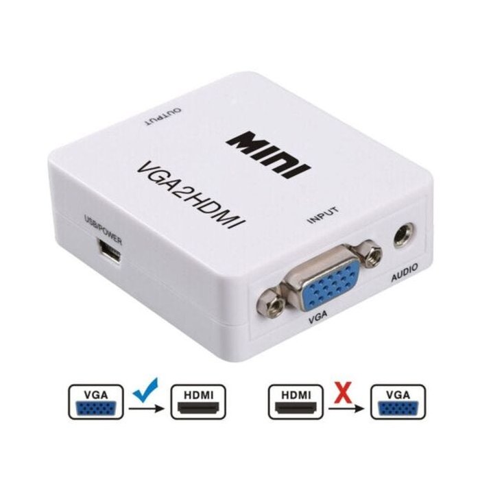 É usado para converter vídeo VGA e sinal de áudio analógico de 3.5mm em seu computador para sinal HDMI.