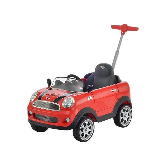 O Mini Cooper é um Empurrador ajustável com controle de direção do carrinho, abertura de uma das portas, apoio dos pés removíveis, volante com som e cinto de segurança de 3 pontos.