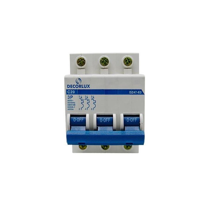 Mini Disjuntor, Plástico, Din35, 3p 20a 230-400v 3ka Curva C, Cor Branco, (cx 1un) Decorlux