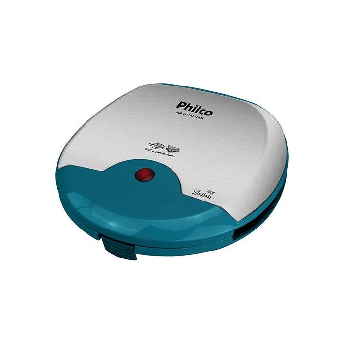 • O Mini Grill e Sanduicheira Philco Inox Azul 750W é supermoderno, leve, compacto e te auxilia a preparar diversos alimentos em poucos minutos!