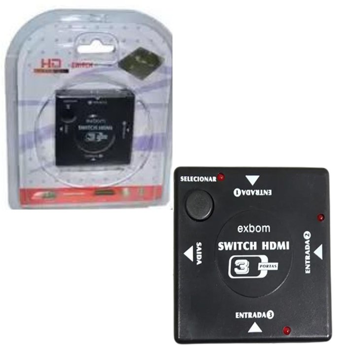 Adaptador Hdmi Switch 3 Em 1Com o hdmi Switch você pode utilizar mais de um dispositivo na mesma porta hdmi, o switch hdmi com 3 entradas e 1 saída é indicado para casos em que o usuário possui algum aparelho com apenas uma entrada hdmi ou possui aparelhos com entradas de difícil acesso. Sendo assim, faz-se necessário o uso de um equipamento que concentre em um único lugar as várias entradas hdmi, facilitando a conexão com vários equipamentos, sem perda de qualidade da imagem ou som. Fácil transição de um equipamento para outro.EspecificaçõesModelo Adaptador hdmi 3 em 1Compatibilidade Câmeras e filmadoras, vídeo games, DVD/Blue-Ray, codificadores HDTV dentre outros dispositivos com conexão hdmi Resolução Máxima 1920 x 1080 (Full hd)Informações AdicionaisContém botão de SeleçãoConteúdo da Embalagem 1 Adaptador hdmi 3 em 1Garantia 3 Meses Contra Defeitos de Fabricação (Referentes à garantia legal, nos termos do artigo 26, ii, do Código de Defesa do Consumidor)