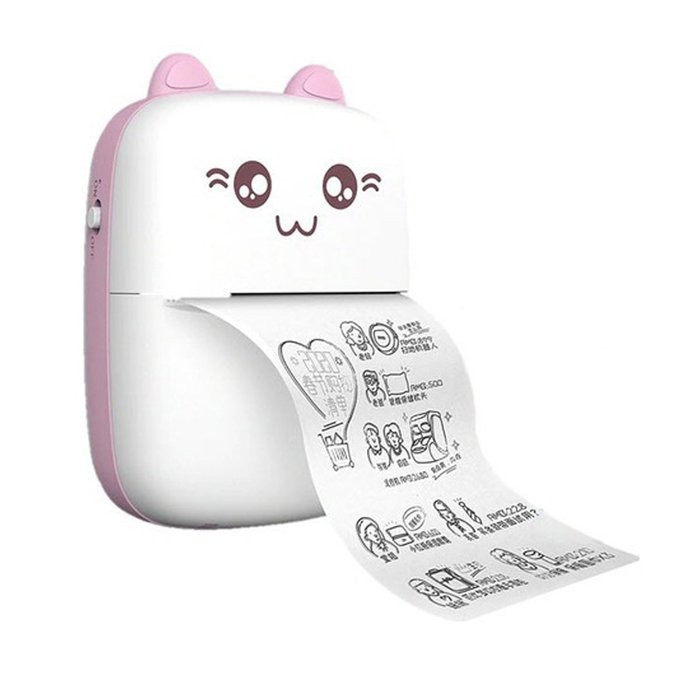 Mini Impressora Termica Laser sem Tinta Bluetooth Bateria Recarregavel Usb Etiquita Lista Arquivo Fo Branco e Rosa