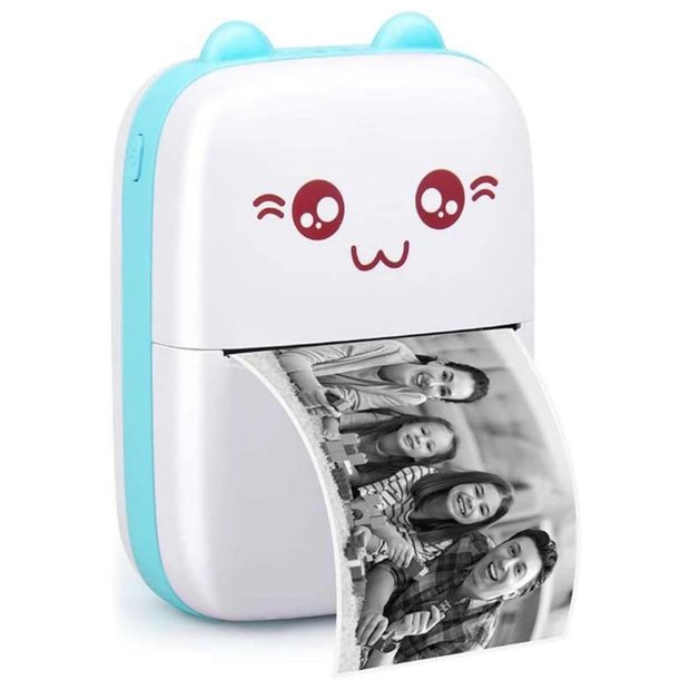 Mini Impressora Termica Sem Tinta Usb Bluetooth Recarregavel De Bolso Imprime Etiqueta Arquivo Foto Branco e Azul