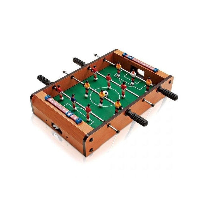 Em um modelo compacto, a Mini Mesa de Pebolim pesa aproximadamente 2 quilos, o que permite que ela seja transportada para qualquer lugar sem sacrifício.