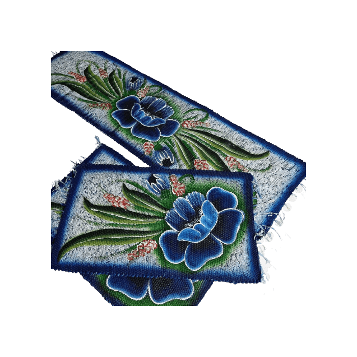Mini Jogo Tapete Cozinha 3 Pçs Pintado à Mão Vários Modelos:Azul 03