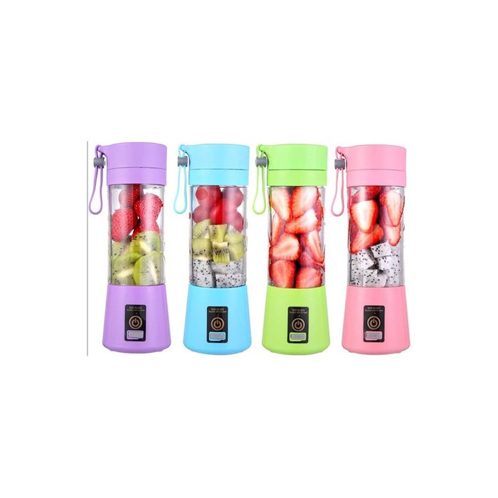 Imagine a liberdade de poder ir a qualquer lugar e misturar seus batidos favoritos, batidos, margaritas ou comida de bebê sem as limitações de um liquidificador normal. Uma nova maneira de preparar Sucos, Vitaminas, Shakes e muito mais. A qualquer hora e em qualquer lugar, verdadeiramente portátil, com bateria recarregável com autonomia para 10 misturas. Tem sistema de proteção que não liga sem o copo transparente. Conta com alça de silicone para melhor transportá-lo. Você mistura e bebe na mesma garrafa. O presente ideal para amigos e para você mesmo, por ser portátil e com design revolucionário permite ser levado para academia, viagens e até mesmo em escritório.INSTRUÇÕES DE USO:Lave as frutas, corte em pedaços pequenos coloque na garrafa, cerca de 60% do copo após adição do líquido, de modo que o volume total represente cerca de 80% do copo. Agite o produto para um melhor funcionamento, e pressione o interruptor, para iniciar o motor, em seguida delicadamente agitar o produto. Pronto! Seu maravilhoso Shake, Suco está pronto para saborear.AUTO LIMPEZA:Basta adicionar água, sabão e mistura. Só falta enxaguar, e está pronto para a tua próxima aventura de mistura.Como ligar: Pressione o botão on/off duas vezes consecutivas (click, click).CARACTERÍSTICAS:- Carregamento via USB do computador ou carregador de celular- Capacidade: 380ml- Motor: DC 3,6 Vdc- Proteção ociosa: Desliga em 5s- Rotação do motor:22000 RPM- Carga Completa: 4 horas - Durante Carregamento: 15000RPM- Corrente de trabalho: 10-12A- Dimensões: 23, x 8cm (Alt x Diâmetro)- Peso: 465G- Quantidade de Laminas: '6'CONTEÚDO DA EMBALAGEM:1x Mini Liquidificador1x Cabo Micro USB1x Manual