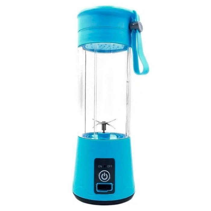 Mini Liquidificador Portátil Recarregável Usb 4 Lâminas 380 Ml Azul