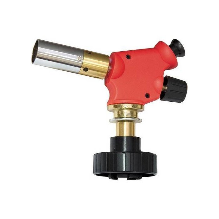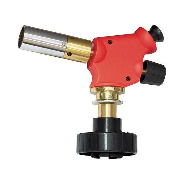 Conecte a ferramenta ao cilindro de gás butano padrão e rosqueie até travar para assegurar um boa vedação.
