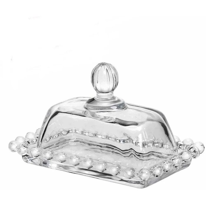 Mini Manteigueira de Vidro Bolinhas 11x7x8cm - Bono Transparente