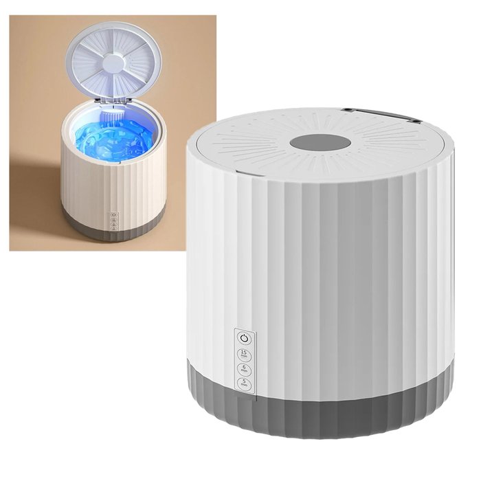 Mini Maquina de Lavar Roupa Bate Centrifuga 4 Litros Inteligente Limpeza Profunda Meia Lenço Roupa D Branco e Cinza