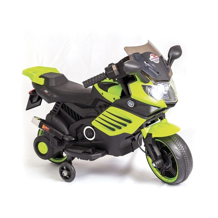 A moto Elétrica Infantil Uni Toys tem motor movido a bateria de 6V e chega a atingir uma velocidade de até 3km/h. Para crianças de até 1,10M, a motinho suporta até 25kg e anda para frente e para trás. Por ser comandada pela própria criança e possui sons de sirenes e luzes de faróis e ainda possui um bagageiro.