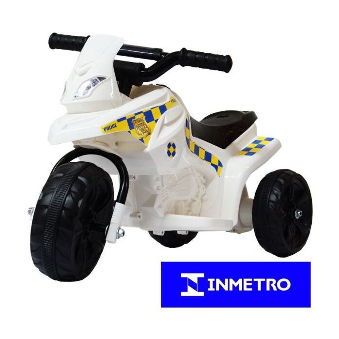 Mini Moto Elétrica Triciclo Criança Infantil Bateria 6V Branca Polícia Bivolt