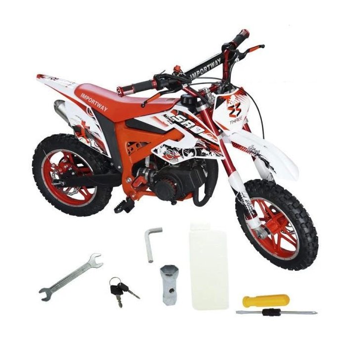 Mini Moto Infantil Partida Elétrica Gasolina 2t 49cc Cross Trilha Off Road Wvdb-005vm Vermelha