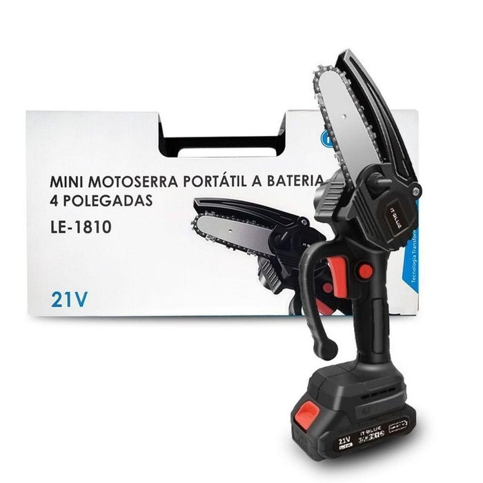 Mini Motosserra Elétrica A Bateria Potente Bivolt 21v Ferramental perfeita para cortes e podas, podar em qualquer lugar, faça cortes em galhos em lugares de difícil acesso. Utilize a com a praticidade de se mover sem arrastar fios. Fácil de usar: corpo leve e conveniente, design leve, mãos longas e sem cansaço. Tamanho pequeno, pode ser segurado com uma mão. Recomendado para serviços domésticos, jardinagem e podas mais simples. Com 2 baterias inclusas, dispensa o uso de fiação, o que torna o uso muito mais prático. Informações Técnicas: Voltagem 21V Tamanho 4 Polegadas Capacidade da bateria 1.300mAh Comprimento da serra 10 cm Carregador Bivolt Itens Inclusos: 1x Motosserra Elétrica Portátil [4 Polegadas] 1x Chave de fenda 1x Carregador Bivolt 2x Baterias