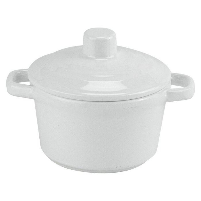 Mini Panela Redonda para Servir com Alça e Tampa 9,3cm Melamina 100% Profissional Gourmet Mix Branco