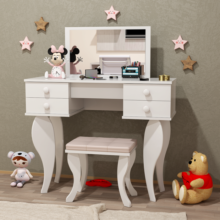 Descubra a magia da Mini Penteadeira Infantil em MDF! Perfeita para as pequenas fashionistas em casa, este encantador espaço de brincadeira é seguro, resistente e cheio de estilo. Com um design adorável, espelho decorativo e espaço para acessórios, é o presente perfeito para promover a criatividade e diversão das crianças. Transforme o quarto da sua pequena em um mundo encantado de make-believe com esta penteadeira irresistível!