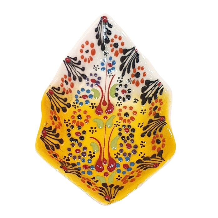 Mini Petisqueira Turca Balão Amarelo 14cm Produto perfeito para decorar ambientes, deixando-os alegres e cheios de estilo. Bowls Turcos, artesanais, pintados a mão, lindos para decorar sua casa de forma moderna mas com um toque de antiguidade. Material: Cerâmica Cor: Colorido Peso: Aproximadamente 700g Altura: 2cm Largura: 7cm Comprimento: 14cm Origem: Turquia O produto é artesanal, fabricado e importado e por isso torna-se quase único apresentando pequenas variações. *Os produtos podem apresentar pequenas variações de cor, tonalidade e brilho: produto artesanal. **Podem ter pequenas variações em seu tamanho: produto artesanal. ***Podem ter pequenas variações em seu peso: produto artesanal. ****Produtos com pinturas únicas, dificilmente são idênticos. Somente as cores predominantes são iguais.