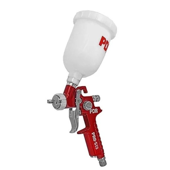 Mini Pistola De Pintura Ar Direto Bico 0,8mm Pdr-pro-513 A Mini Pistola de Pintura PRO-513 é uma ferramenta pneumática compacta e eficiente, indicada para pequenos retoques, trabalhos artesanais, serralherias e aplicações moveleiras. Com sistema de gravidade e funcionamento por ar direto, oferece praticidade e precisão na aplicação da tinta. Leve e de fácil manuseio, possui bico de 0,8mm e copo de 250ml, proporcionando um acabamento fino e uniforme. Sua pressão de trabalho varia entre 25 e 35 PSI, com um consumo de ar reduzido de apenas 0,22 PCM a 30 PSI, tornando-a uma opção econômica e versátil para diferentes tipos de pintura. Tipo: Pistola