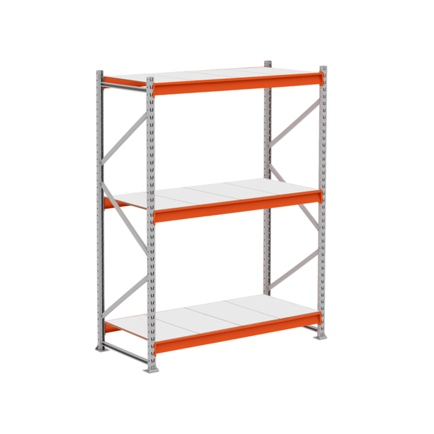 Prático e versátil, além de ser de fácil montagem. Dispensa o uso de empilhadeiras, onde as mercadorias são depositadas e retiradas manualmente dos planos. Produzido em aço resistente, com reforço nas laterais é indicado para depósitos, estoques e exposição, como: pet shops, oficinas, lojas de materiais de construção e mini atacarejos.