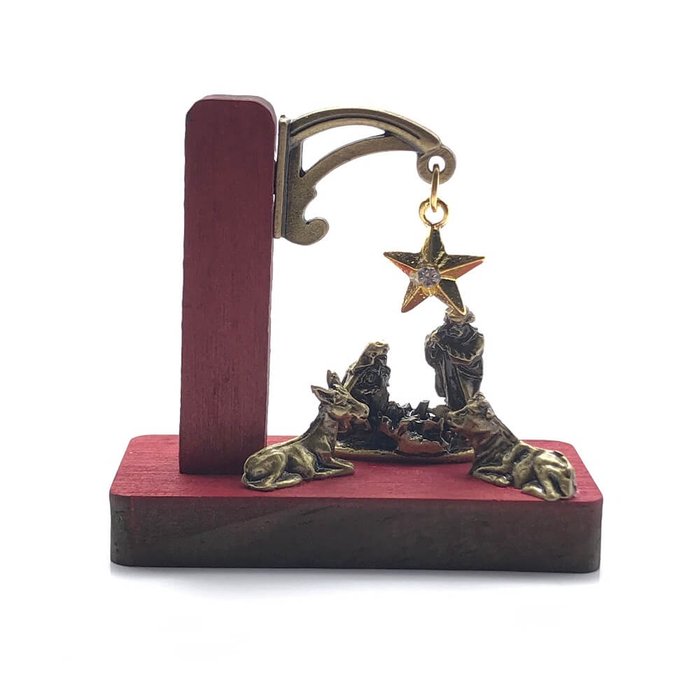 Mini Presépio Natal Completo Madeira Vermelho Rústico Vermelho
