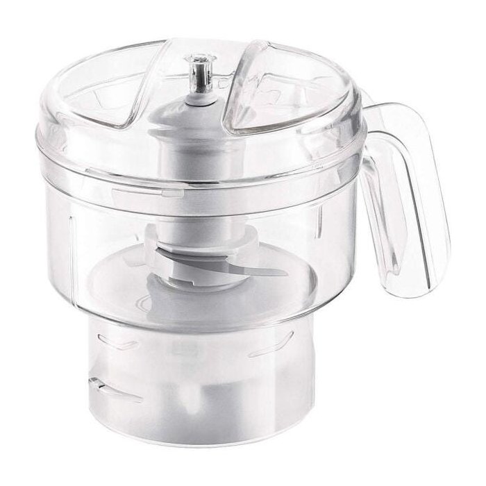 O acessório mini processador é adequado para picar ingredientes como cebola, carne, ervas, legumes, frutas, chocolate, queijos duros, nozes e castanhas em geral (sem casca). Além disso, é fácil de encaixar.