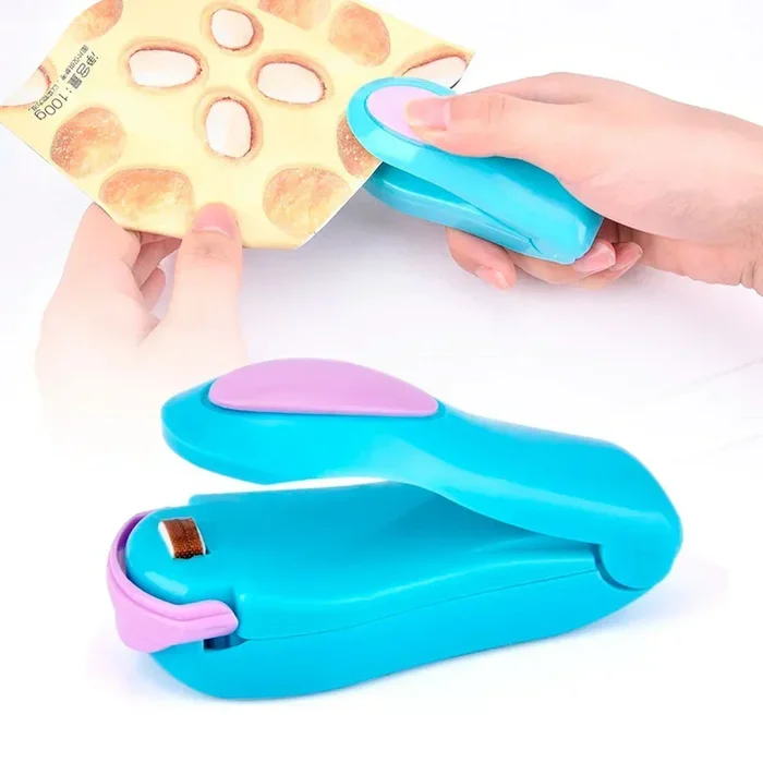 A mini máquina seladora é utilizada para lacrar e vedar embalagens de alimentos que não foram utilizados totalmente e mantê-los frescos.