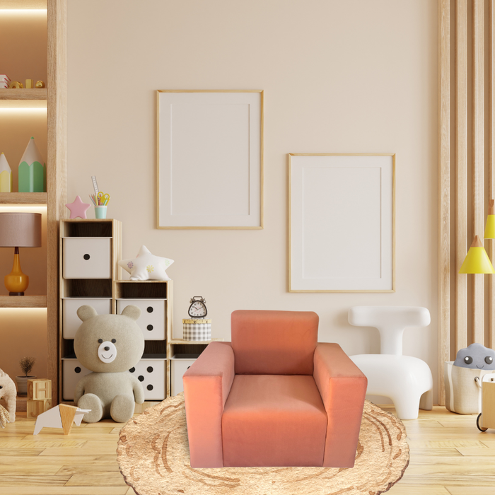Feita com tecido suede de alta qualidade, ela oferece suavidade ao toque e fácil limpeza. O recheio em espuma de alta densidade garante um assento confortável e duradouro, ideal para longas horas de brincadeiras e descanso. O MDF utilizado na estrutura proporciona resistência e estabilidade, enquanto o acabamento em costura reforçada assegura durabilidade e segurança.