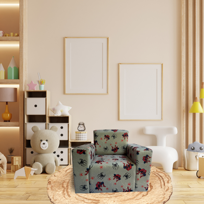 Mini Sofá Infantil Poltrona Criança Estofado com Personagem Homem Aranha Cinza