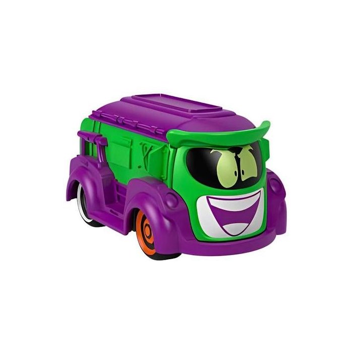 Este conjunto de veículos traz 5 personagens do desenho em escala 1:55 com o autêntico estilo BatWheels, materiais die-cast Batcast Metal e rodas que giram de verdade
