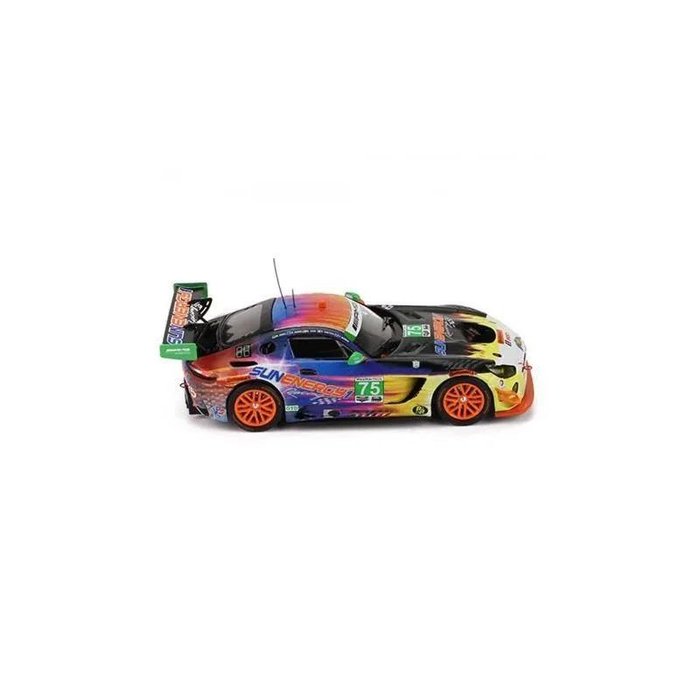 A miniatura do Mercedes AMG GT3 na escala 1:43 é uma detalhada do cro de corrida que competiu em Daytona em 2017. Este modelo. fabricado pela Gtm113. captura fielmente os detalhes e cacterísticas do cro orial. desde a aerodinâmica agressiva até os logotipos e patrocina presentes na croceria.
