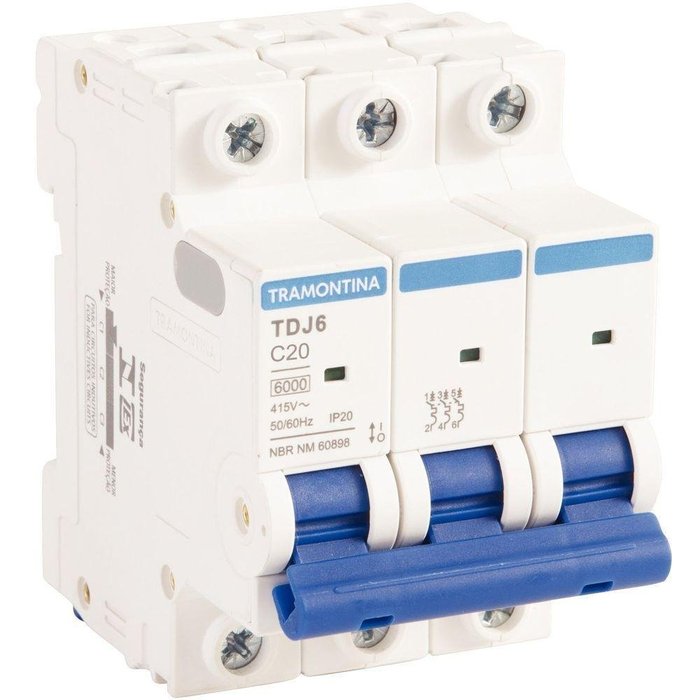 Minidisjuntor Tdj6 3 P 20 A 6ka Curva C Tramontina Tramontina
