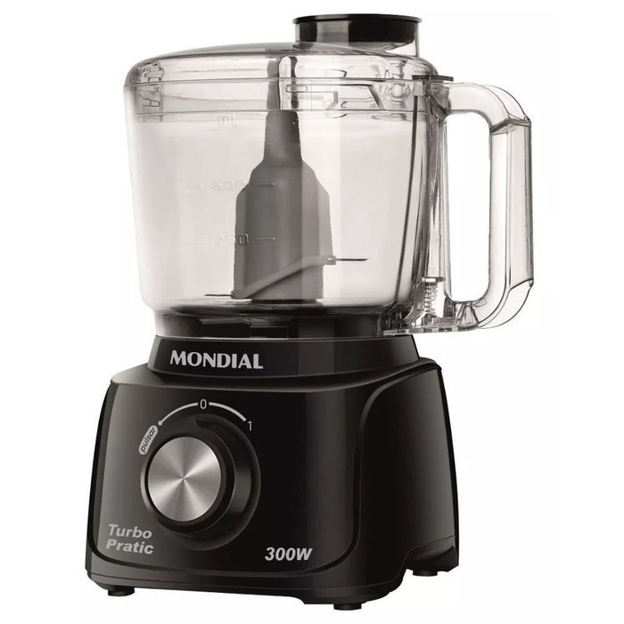 O Mini Processador de alimentos 300 watts preto Turbo Pratic - MP-16-B da Mondial é seu novo melhor parceiro na cozinha. Ele faz tudo para você: desde picar, moer, triturar, ralar até fatiar de um jeito mais fácil e eficiente. Proporciona muito mais praticidade e rapidez no preparo de diversas delicias para sua família!Prático e rápido, ele possui faca em aço inox para triturar com mais perfeição, botão pulsar que permite controlar o grau desejado de trituração do alimento, além de garantir o processamento mais rápido. Características do Produto: Nome da marca: MondialFabricante#8206;: MONDIALModelo: #8206;MP-16-BNome do modelo:#8206;Turbo PraticTipo de fonte de energia: #8206;Energia elétricaFunciona com baterias: #8206;NãoJarra: 500 mlVelocidade: 1 velocidade, mais função pulsarPeças removíveis: simMaterial da faca: aço inoxPotência: 300WDimensões do produto: Altura: 23,5 cm Largura: 18 cm Profundidade: 15,5Peso: 0,940 kg Garantia do Fabricante: 12 meses